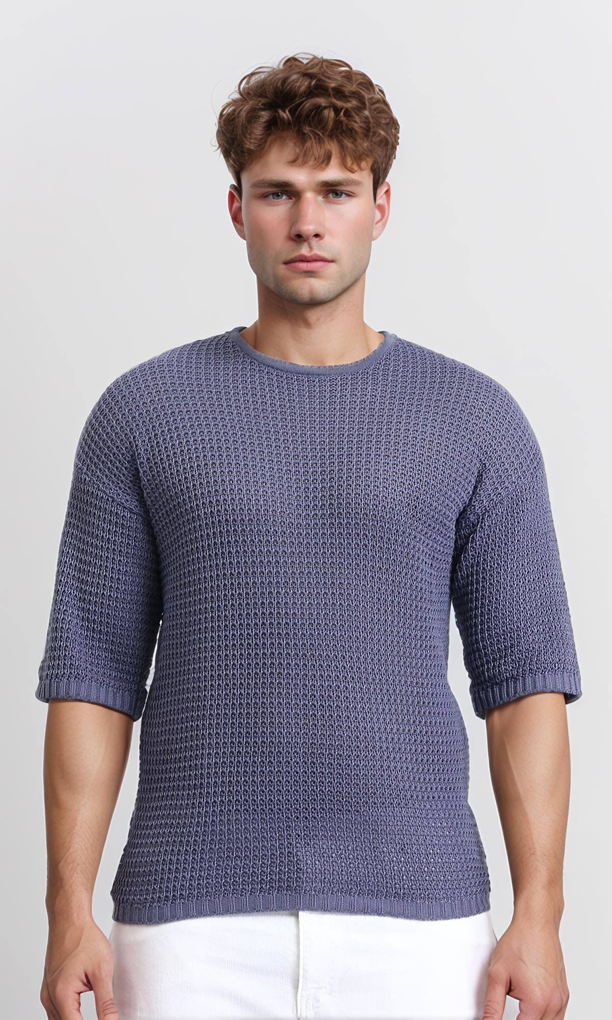 R207276 - Self Knit Slip On Casual Tee - Greyish Blue
