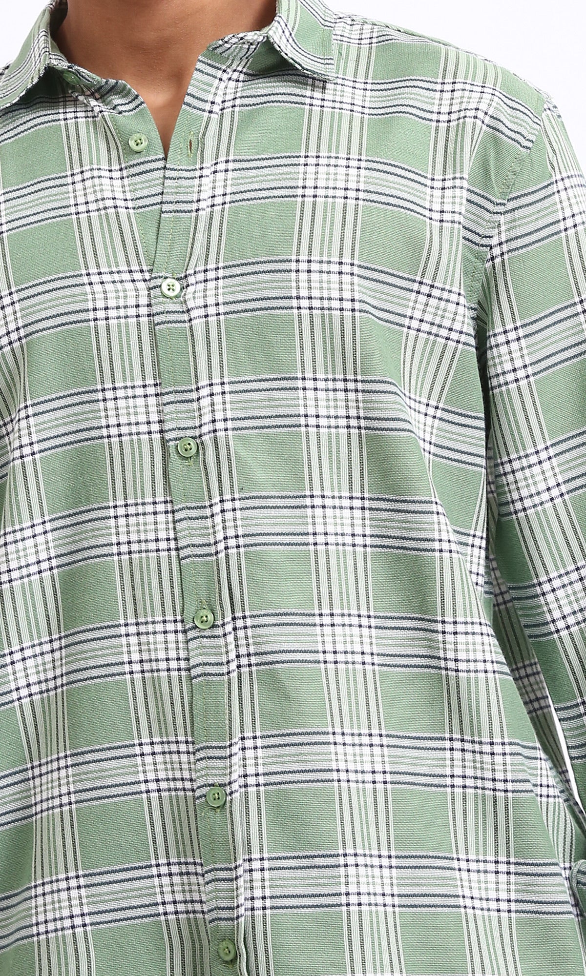R208099 - Plaids Long Sleeves Cotton Shirt - Light Green & White