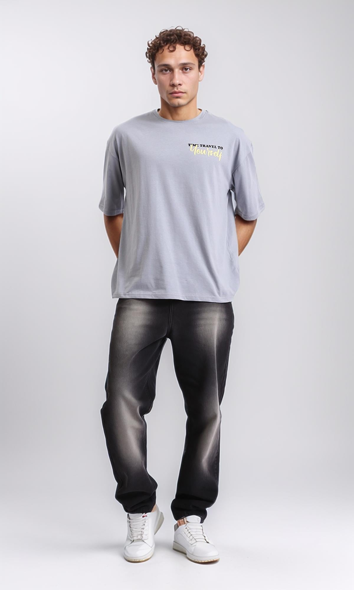 R208559 - Crew Neck Summer Printed Tee - Grey