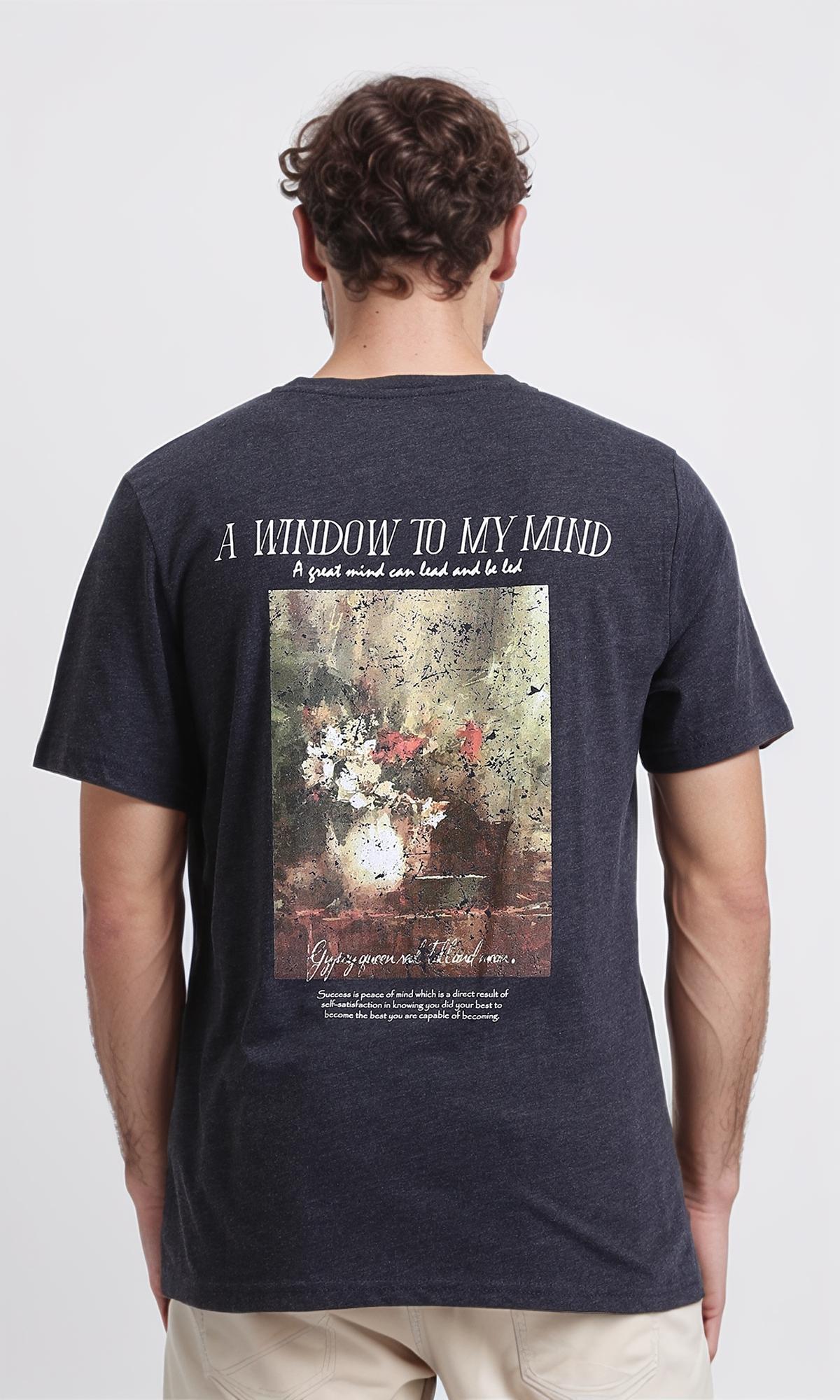 R208584 - Regular Fit Printed Slip On Tee - Heather Charcoal