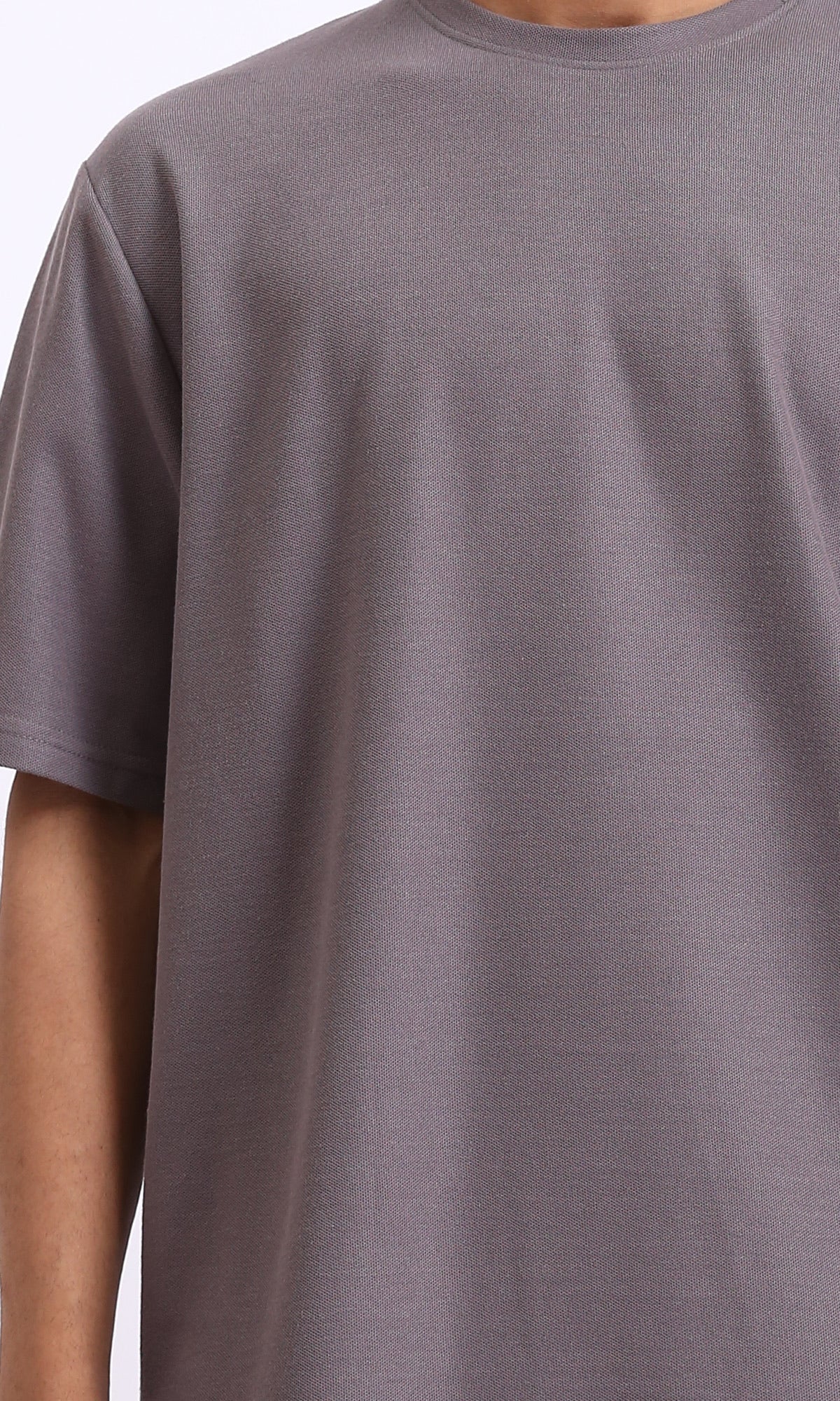 R208591 - Round Neck Solid Basic Tee - Dark Grey
