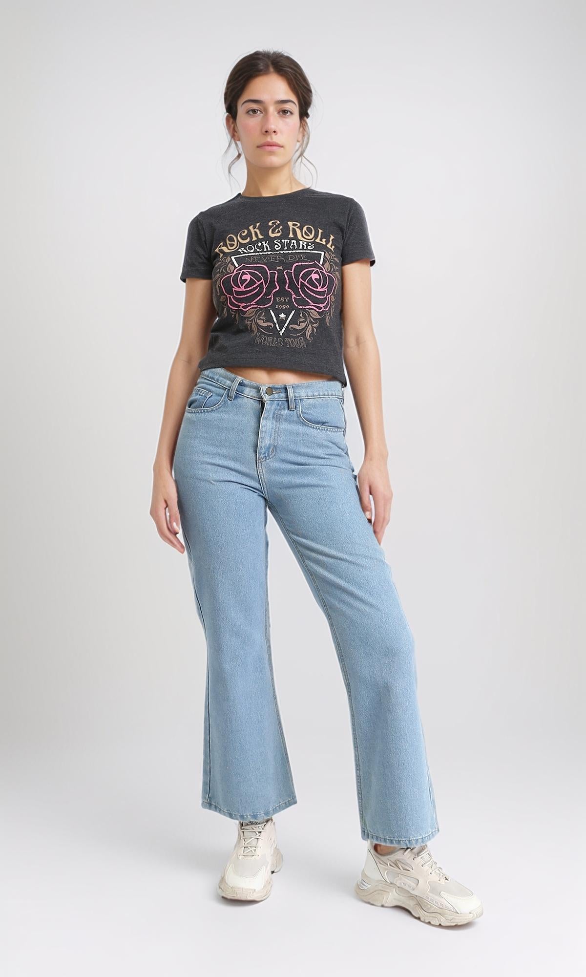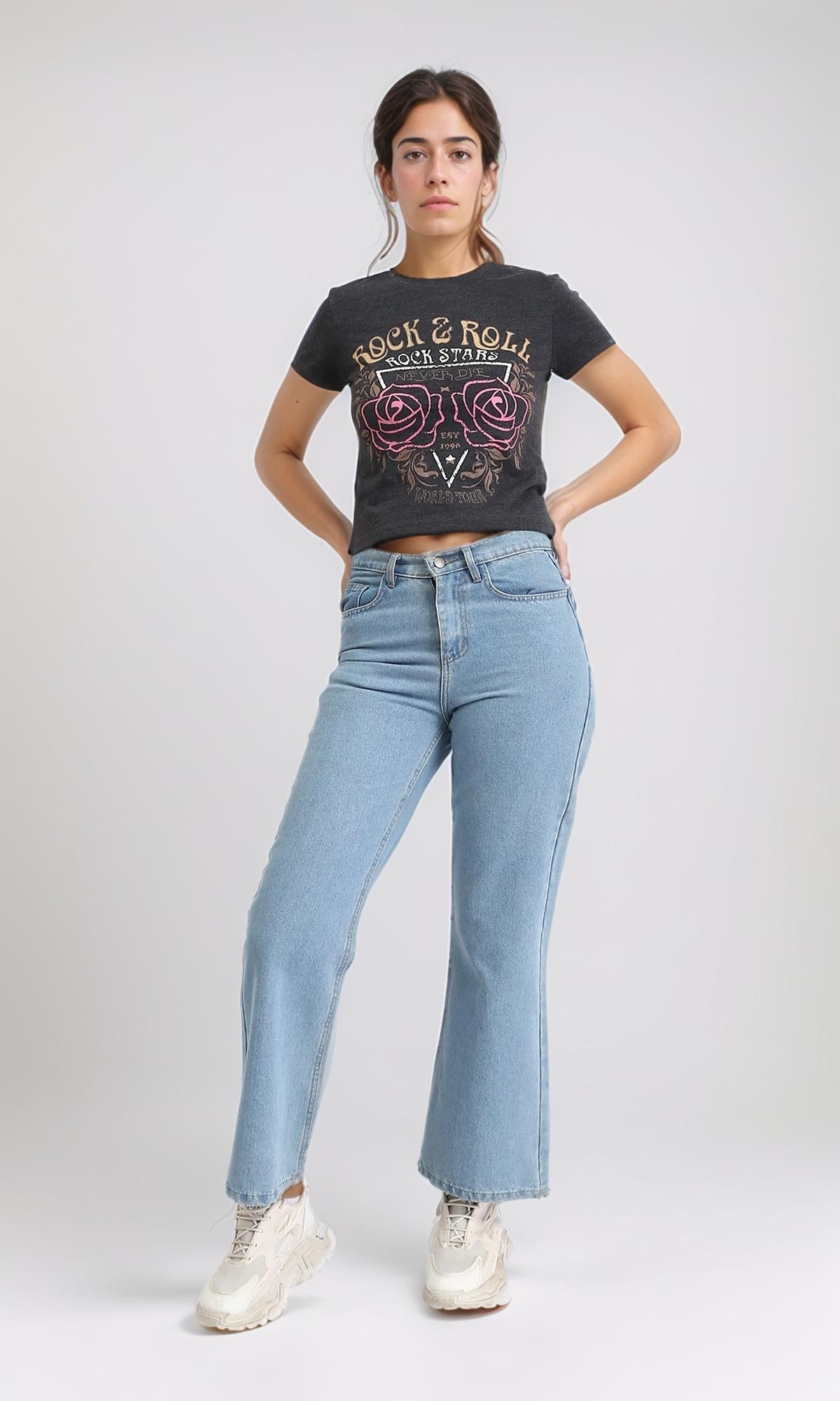 R208612 - "Rock & Roll" Short Sleeves Feminine Tee - Heather Dark Grey
