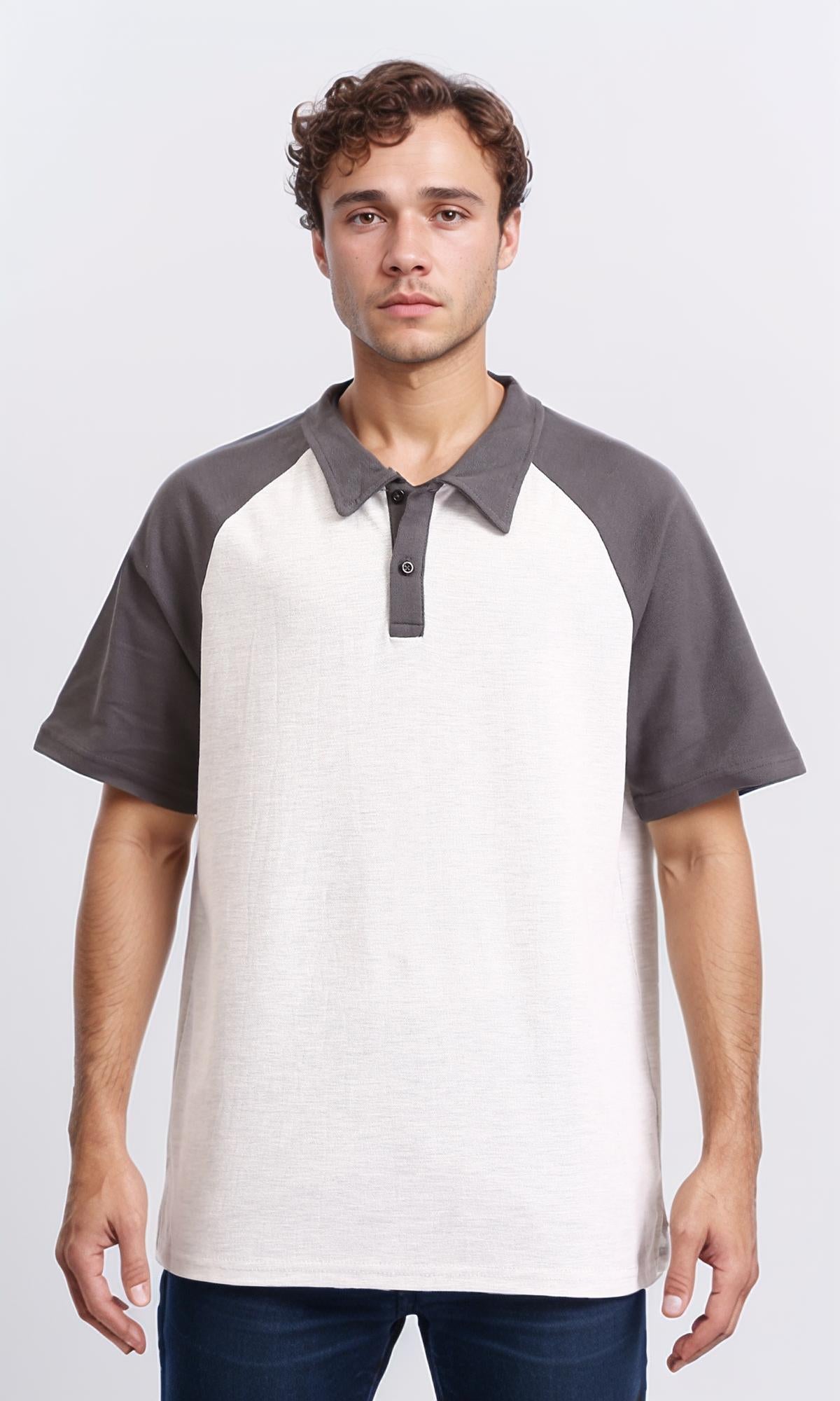 R210620 - Bi-Tone Buttoned Polo Shirt - Dark Grey & White