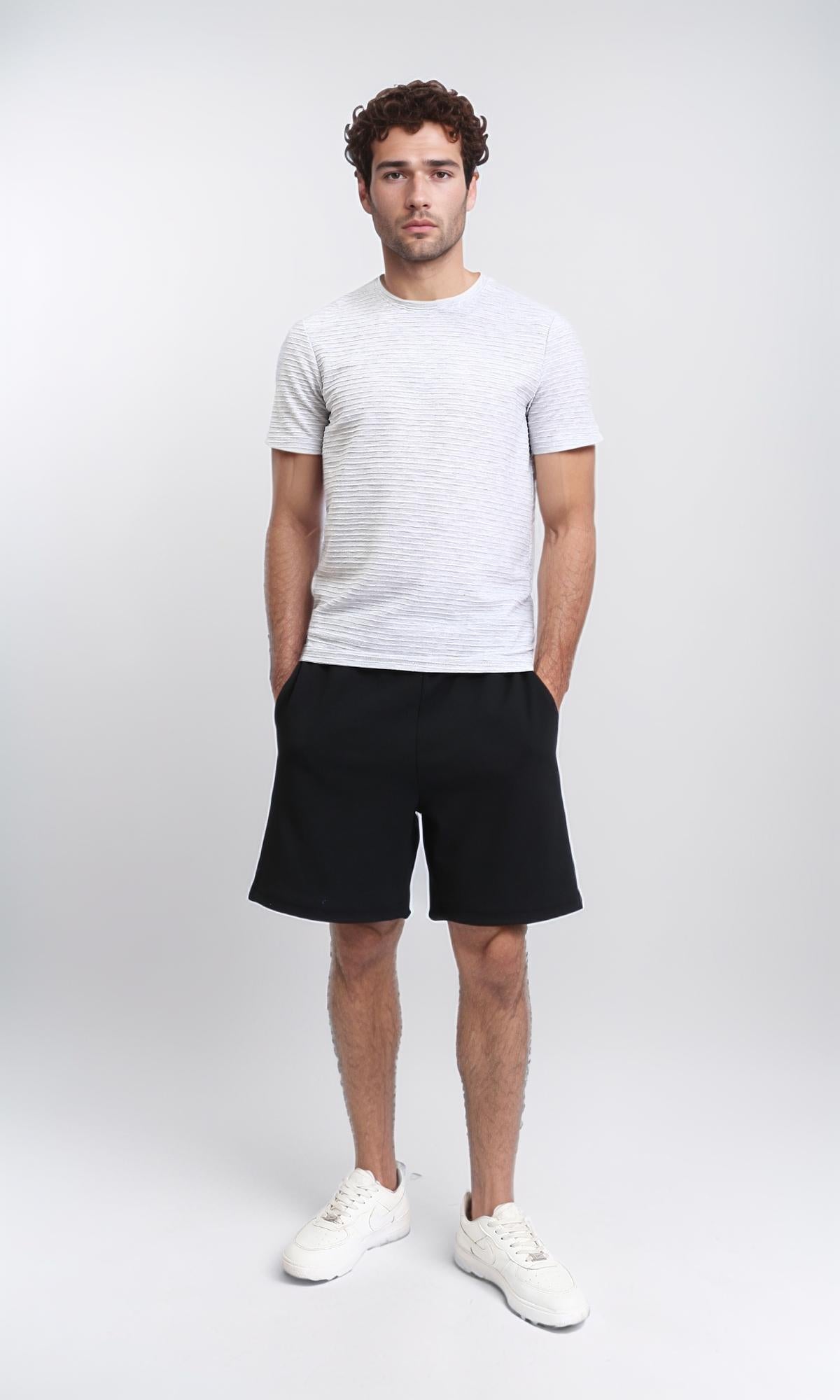R210935 - Self Pattern Short Sleeves Slip On Tee - Black